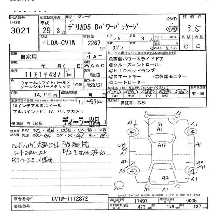 Год выпуска2017 Пробег 111 000 км КузовLDA-CV1W КомплектацияD POWER PACK -JI4WD
