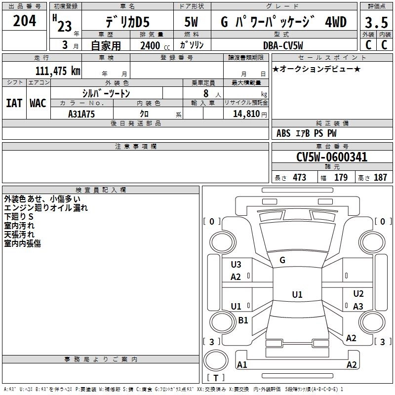 Год выпуска2011 Пробег 111 000 км КузовCV5W КомплектацияG POWER PACK -JI4WD