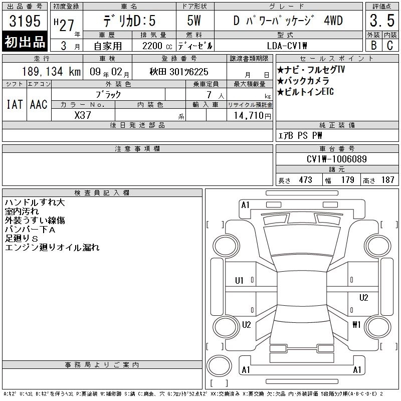 MITSUBISHI DELICA D:5 2015 г., лот № 3195