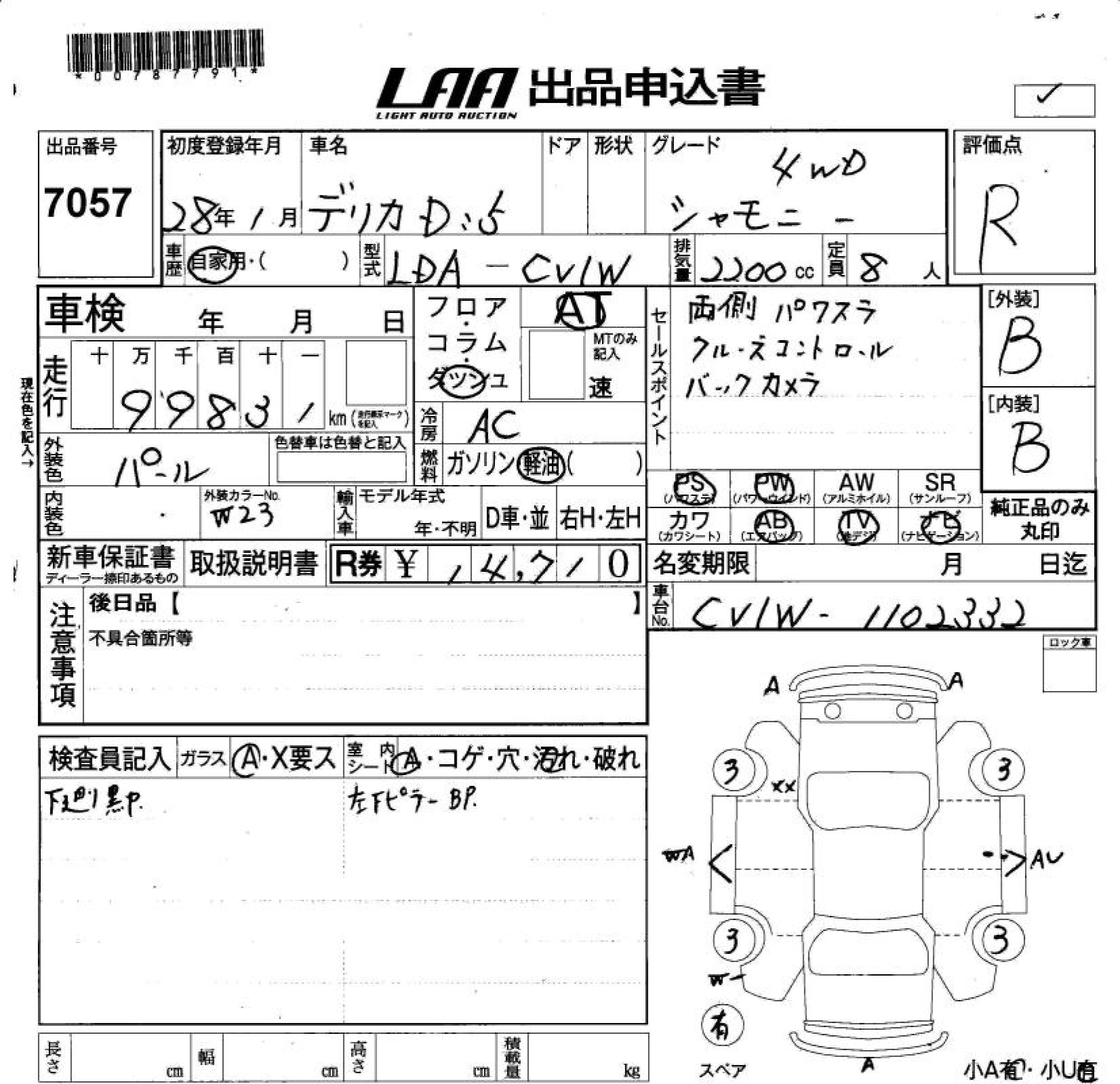 MITSUBISHI DELICA D:5 2016 г., лот № 7057