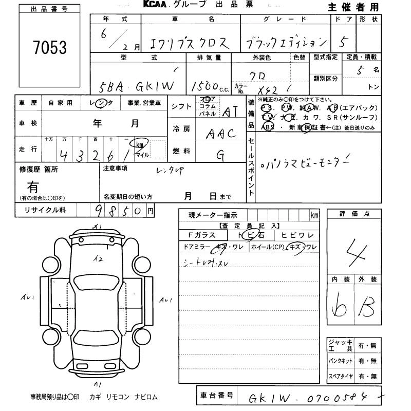 Статус выставлен на аукцион Лот 7053 Аукцион KCAA Fukuoka Дата аукциона 29.01.2026