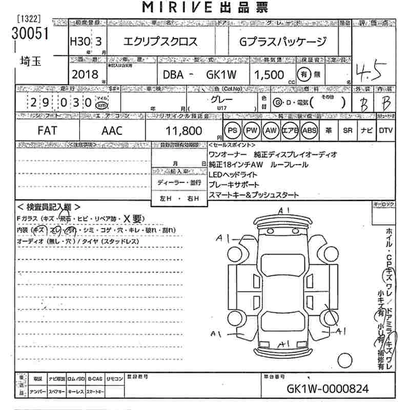 MITSUBISHI ECLIPSE CROSS 2018 г., лот № 30051