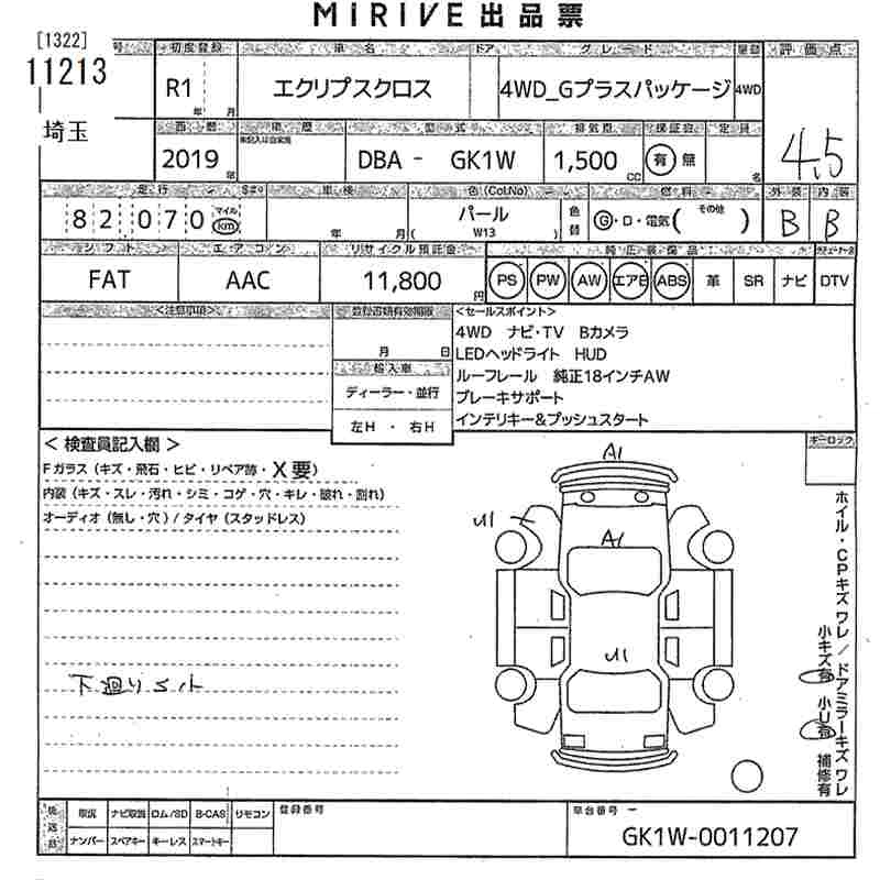 MITSUBISHI ECLIPSE CROSS 2019 г., лот № 11213