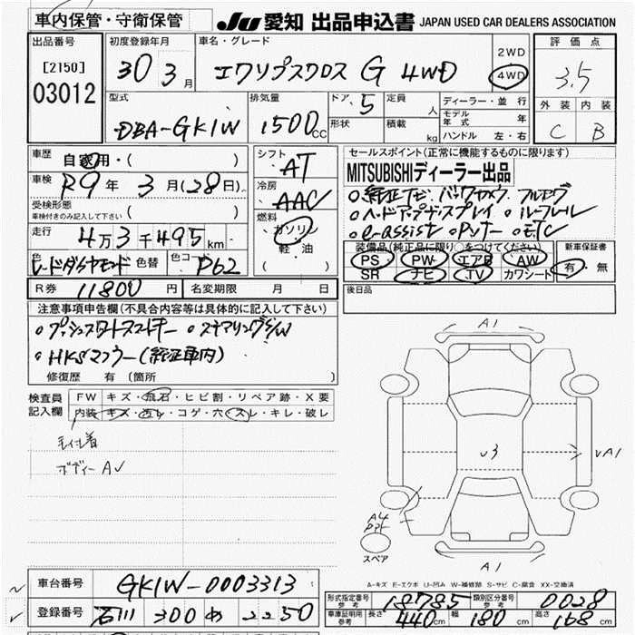 | G | DBA-GK1W | 4B40 | Full-time 4WD | CVT | 1498cc | 150ps(110kW)/5500rpm | AИ-92 | 2 922 480 | |