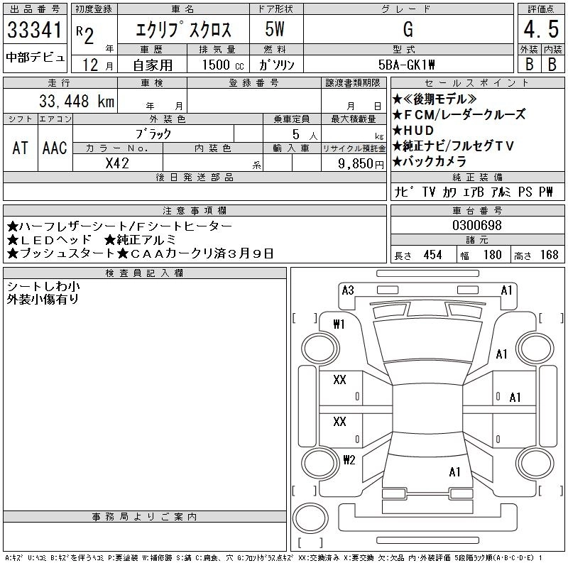MITSUBISHI ECLIPSE CROSS 2020 г., лот № 33341