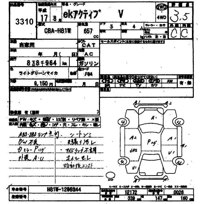 | V | CBA-H81W | 3G83 | Full-time 4WD | 4AT | 657cc | 50ps(37kW)/6500rpm | AИ-92 | 1 316 700 | |