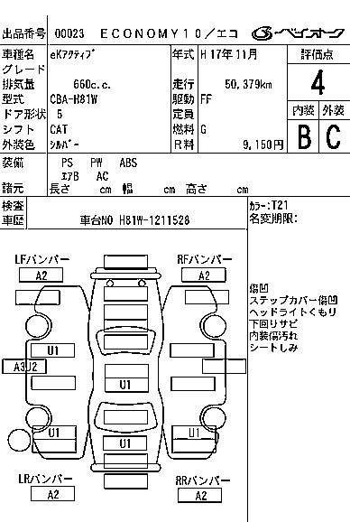 | V | CBA-H81W | 3G83 | FF | 4AT | 657cc | 50ps(37kW)/6500rpm | AИ-92 | 1 197 000 |