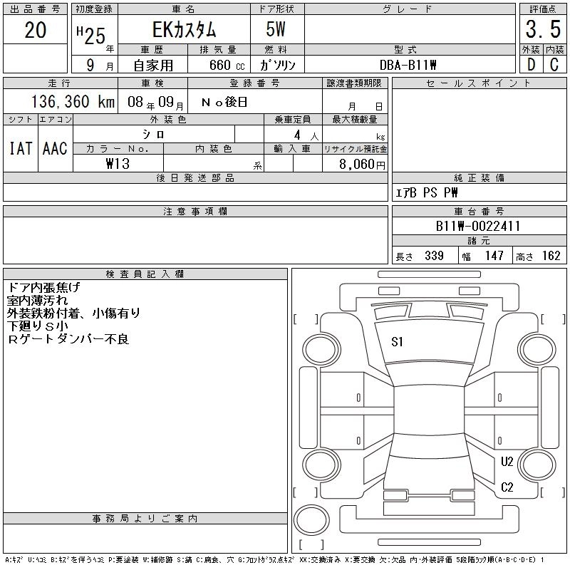 MITSUBISHI EK CUSTOM 2013 г., лот № 20