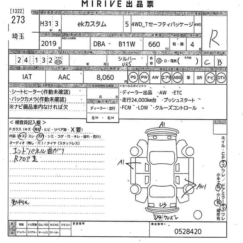 MITSUBISHI EK CUSTOM 2019 г., лот № 273