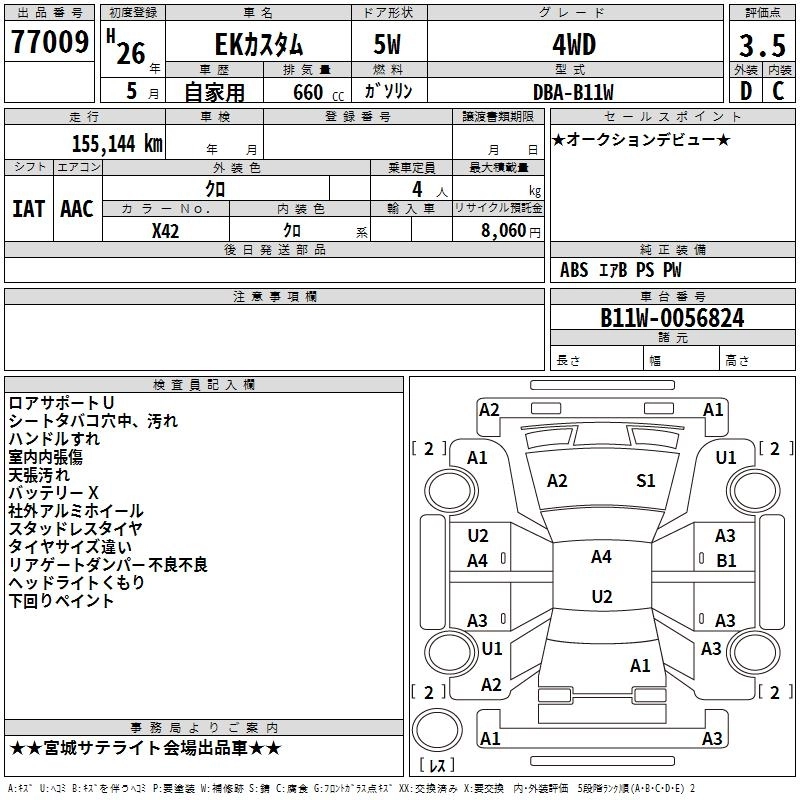 | G | DBA-B11W | 3B20 | Full-time 4WD | CVT | 659cc | 49ps(36kW)/6500rpm | AИ-92 | 1 504 800 | |