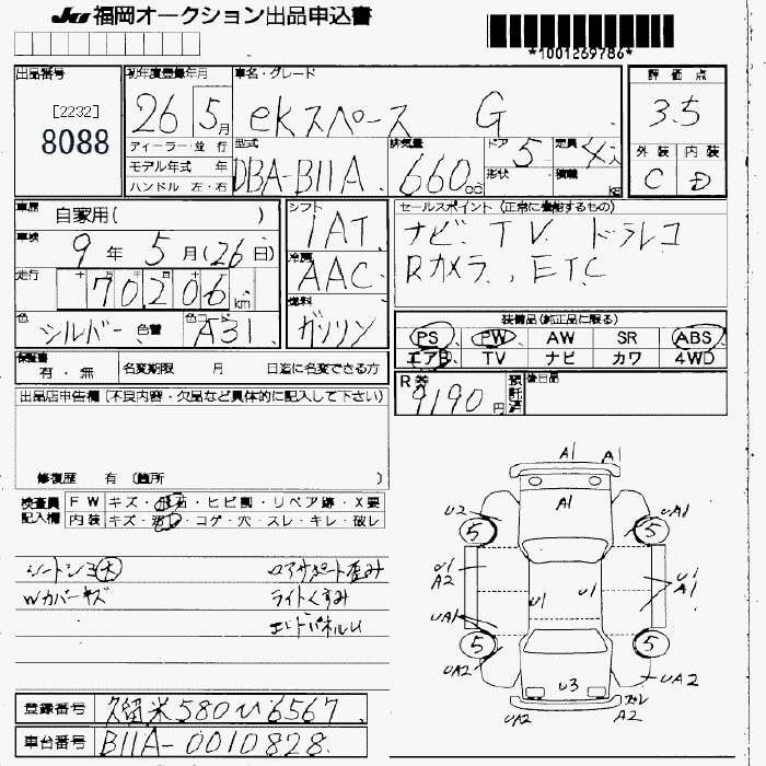 MITSUBISHI EK SPACE 2014 г., лот № 8088