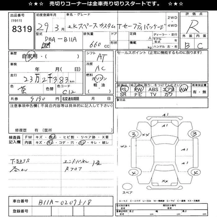 G DBA-B11A 3B20 Full-time 4WD CVT 659cc 49ps(36kW)/6500rpm AИ-92 1 497 960
