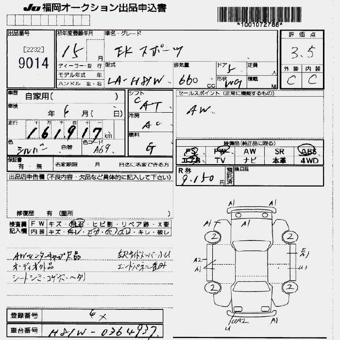Статус выставлен на аукцион Лот 9014 Аукцион JU Fukuoka Дата аукциона 30.01.2026