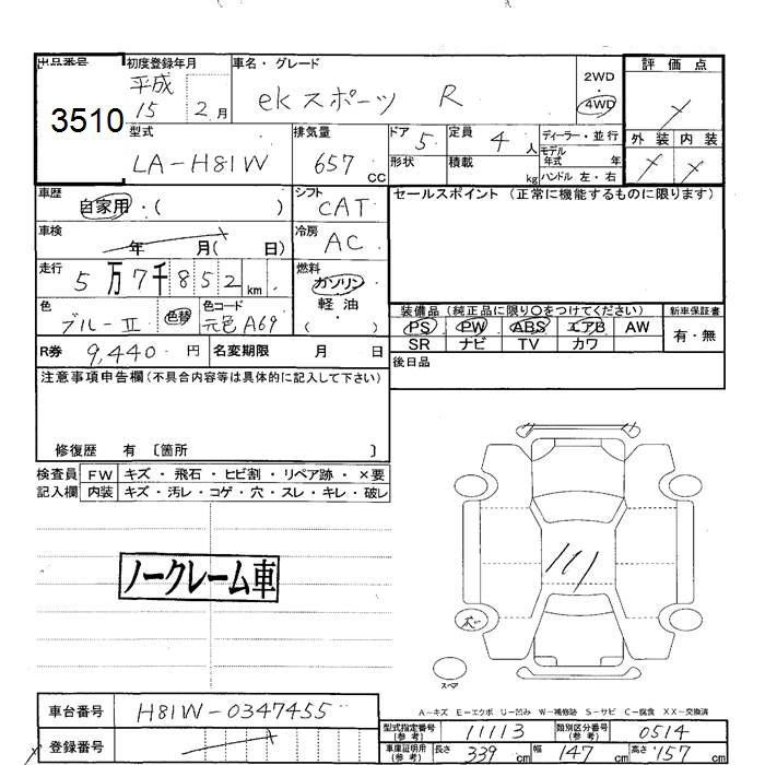 MITSUBISHI EK SPORTS 2003 г., лот № 3510