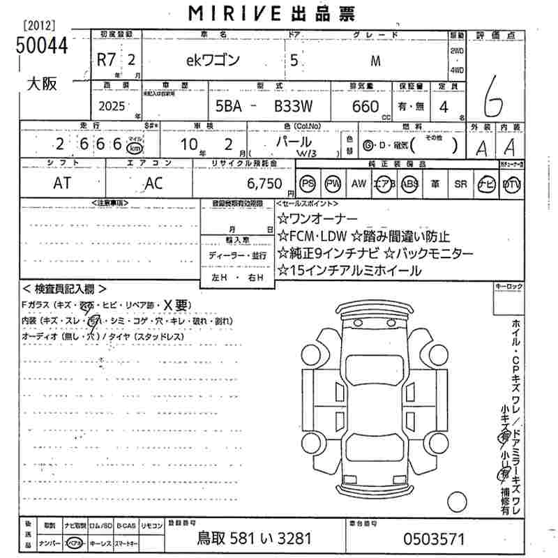 Статус выставлен на аукцион Лот 50044 Аукцион MIRIVE Osaka Дата аукциона 29.01.2026