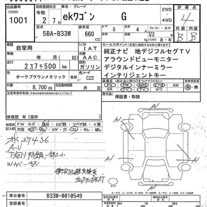 | G | 5BA-B33W | BR06 | FF | CVT | 659cc | 52ps(38kW)/6400rpm | AИ-92 | 1 408 000 | |