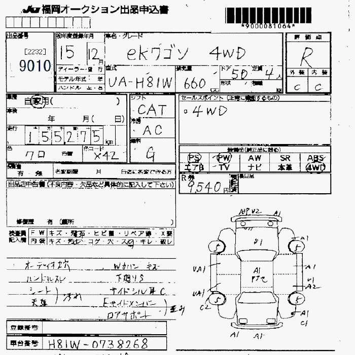 | M | LA-H81W | 3G83 | FF | 3AT | 657cc | 50ps(37kW)/6500rpm | AИ-92 | 910 000 | |