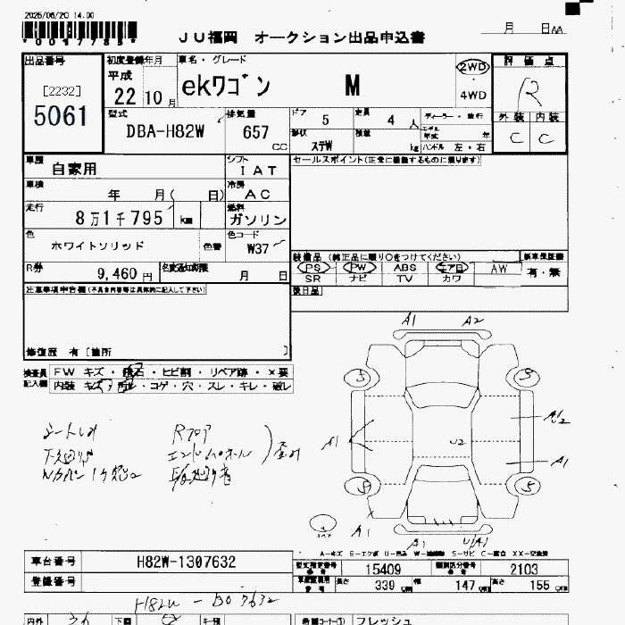 | MS | DBA-H82W | 3G83 | FF | 3AT | 657cc | 50ps(37kW)/6500rpm | AИ-92 | 1 035 000 | |
