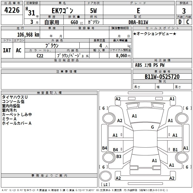 | G | 5BA-B33W | BR06 | FF | CVT | 659cc | 52ps(38kW)/6400rpm | AИ-92 | 1 402 500 | |