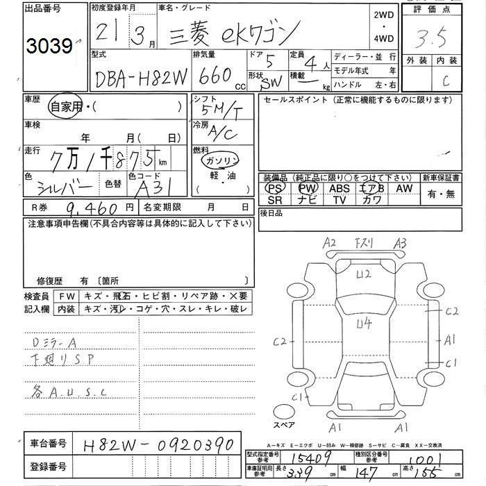 | M | DBA-H82W | 3G83 | FF | 3AT | 657cc | 50ps(37kW)/6500rpm | AИ-92 | 976 500 | |