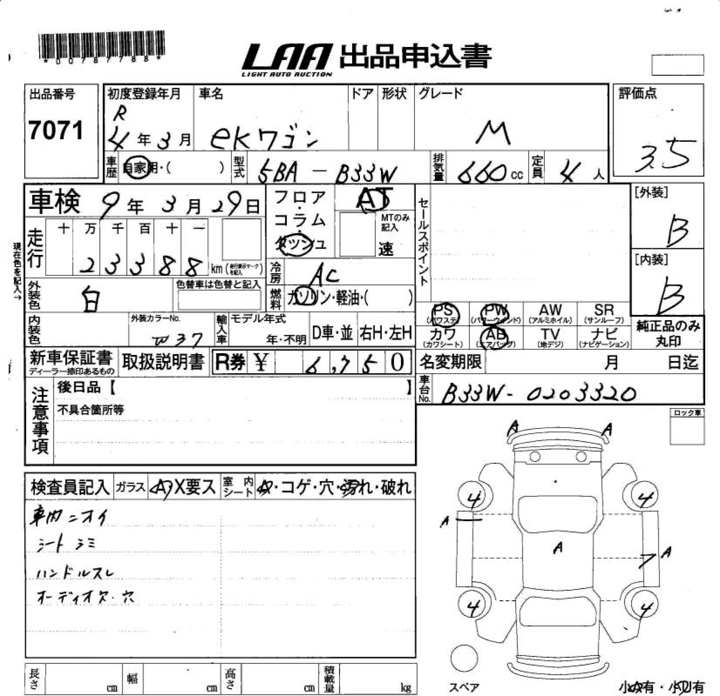 MITSUBISHI EK WAGON 2022 г., лот № 7071