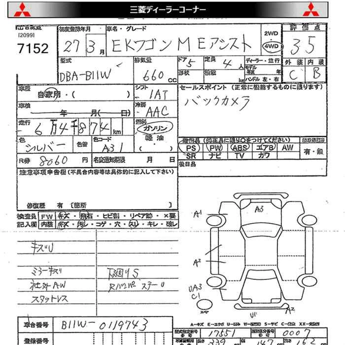 | E | DBA-B11W | 3B20 | FF | CVT | 659cc | 49ps(36kW)/6500rpm | AИ-92 | 1 080 000 |