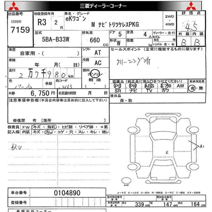 MITSUBISHI EK WAGON 2021 г., лот № 7159