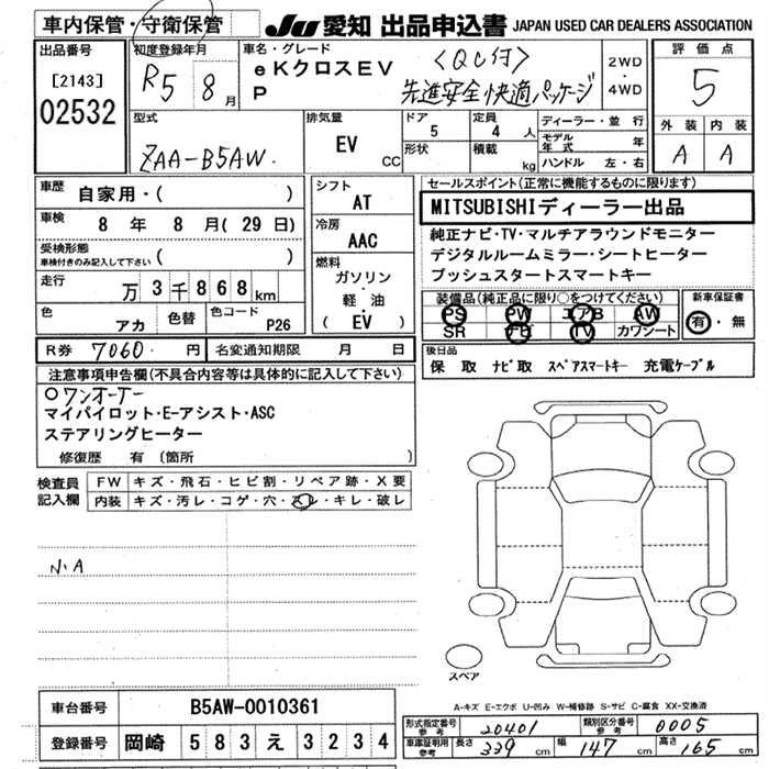 Статус выставлен на аукцион Лот 2532 Аукцион JU Aichi Дата аукциона 29.01.2026