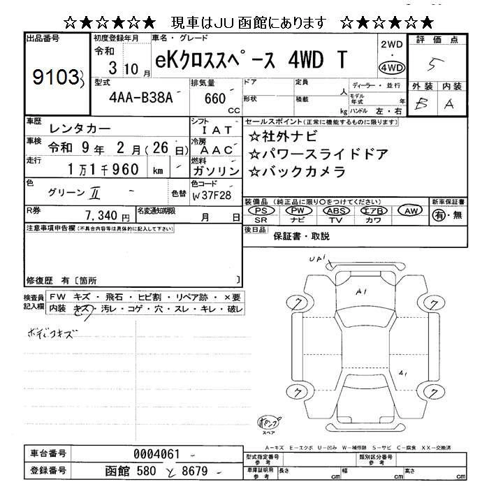 Статус выставлен на аукцион Лот 9103 Аукцион JU Hokkaido Дата аукциона 20.03.2026