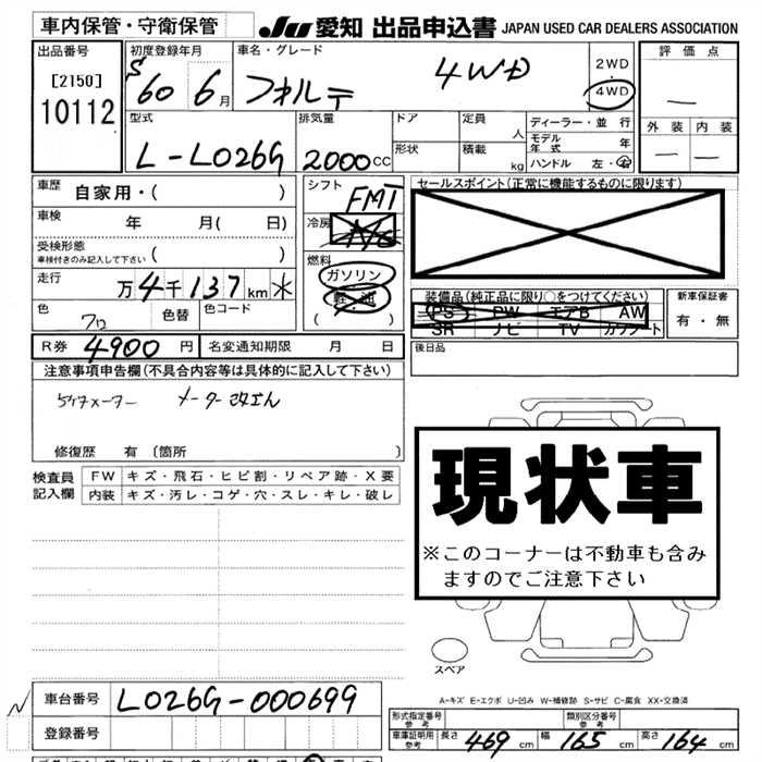 Статус выставлен на аукцион Лот 10112 Аукцион JU Aichi Дата аукциона 19.03.2026
