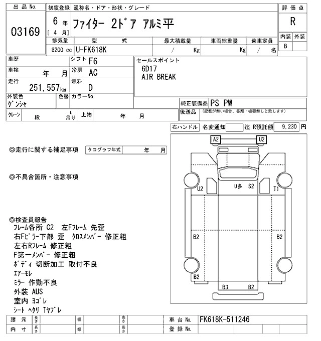 Год выпуска1994 Пробег 252 000 км КузовFK618K Комплектация COMMON. ALUMINIUM B