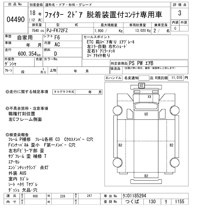 Год выпуска2006 Пробег 600 000 км КузовFK72FZ Комплектация CONTAINER HEAD