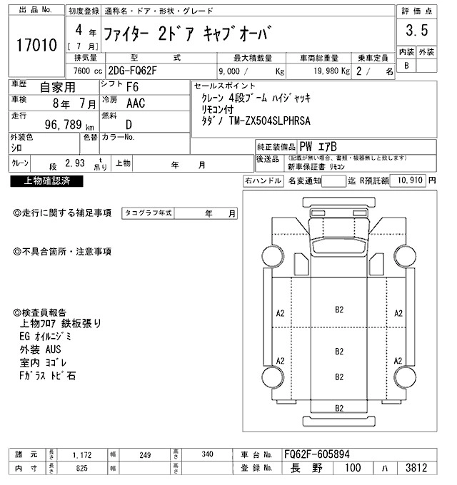 Год выпуска2022 Пробег 97 000 км КузовFQ62F Комплектация COMMON. SELF CRANE 4 -STEP