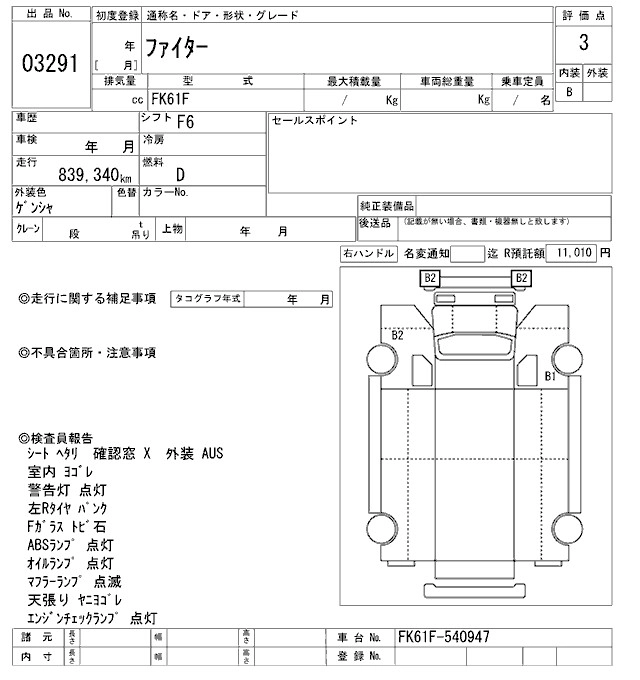 Пробег 839 000 км КузовFK61F Комплектация CHASSIS