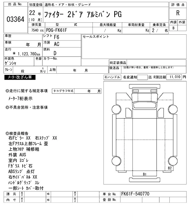 Год выпуска2010 Пробег 1 124 000 км КузовFK61F Комплектация ALUMINUM VAN