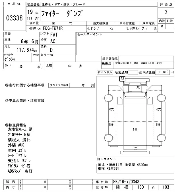 Год выпуска2007 Пробег 118 000 км КузовFK71R Комплектация DUMP