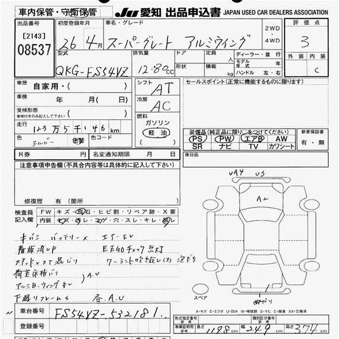 Статус выставлен на аукцион Лот 8537 Аукцион JU Aichi Дата аукциона 29.01.2026