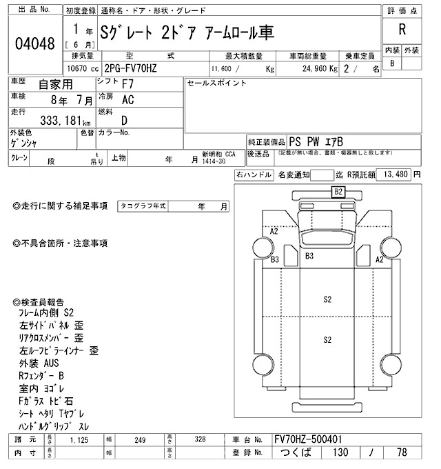 333 000 км КузовFV70HZ Комплектация CONTAINER HEAD ARMROLL
