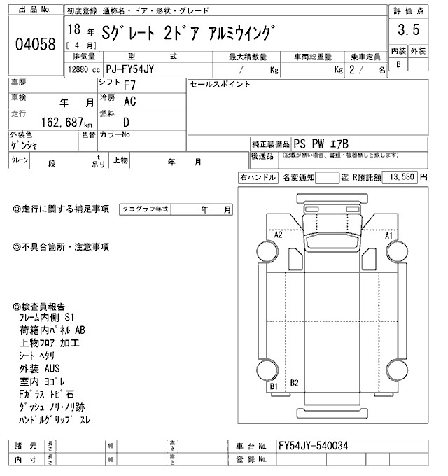 Статус выставлен на аукцион Лот 4058 Аукцион ARAI Oyama VT Дата аукциона 31.01.2026