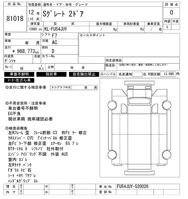 Статус выставлен на аукцион Лот 81018 Аукцион ARAI Oyama VT Дата аукциона 31.01.2026