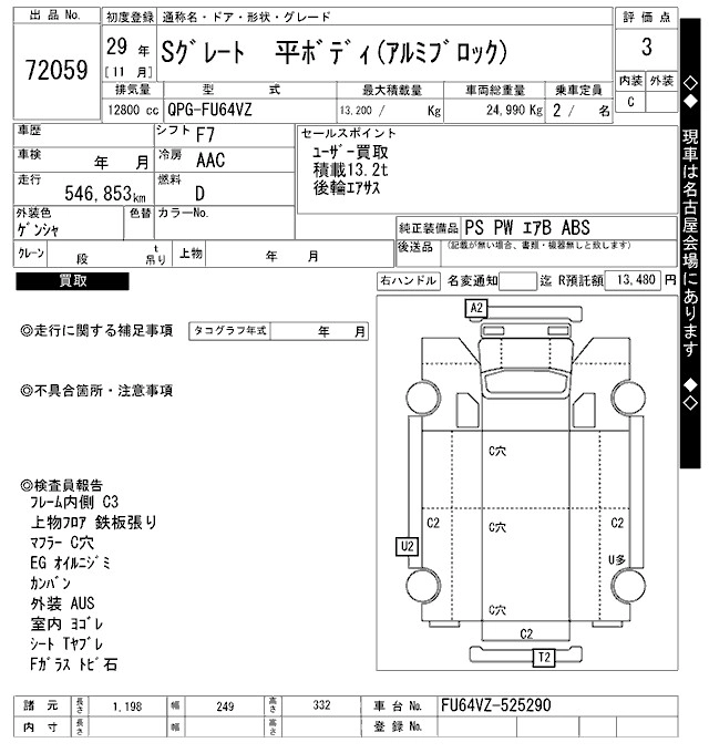 Год выпуска2017 Пробег 547 000 км КузовFU64VZ Комплектация COMMON. ALUMINIUM B