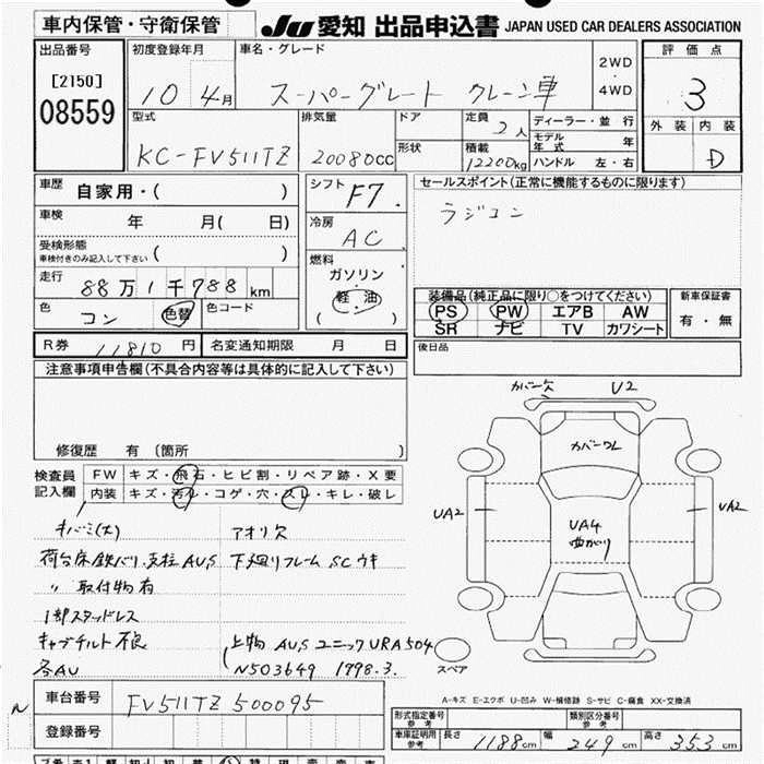 Год выпуска1998 Пробег 882 000 км КузовFV511TZ Комплектация CRANE CAR 12.2T