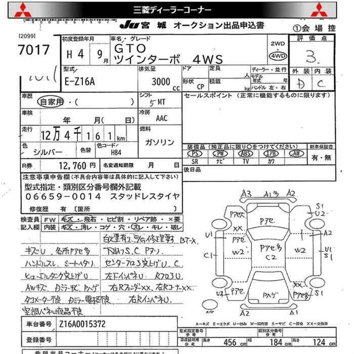 | SPECIAL VERSION | E-Z16A | 6G72 | Full-time 4WD | 4AT | 2972cc | 225ps(165kW)/6000rpm | AИ-95 | 3 820 000 | |