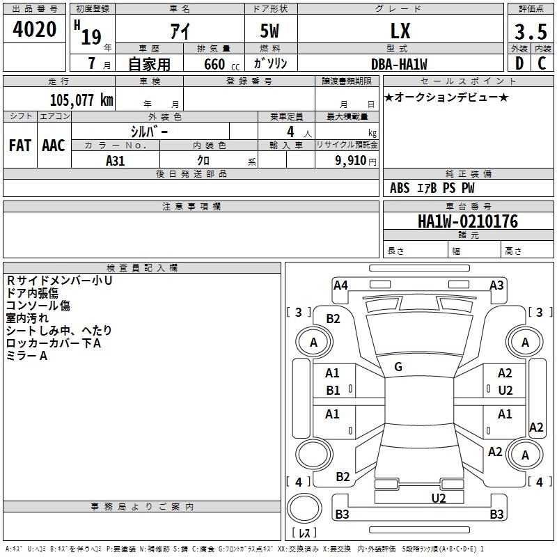| S | DBA-HA1W | 3B20 | Mid-ship | 4AT | 659cc | 52ps(38kW)/7000rpm | AИ-92 | 1 060 500 |