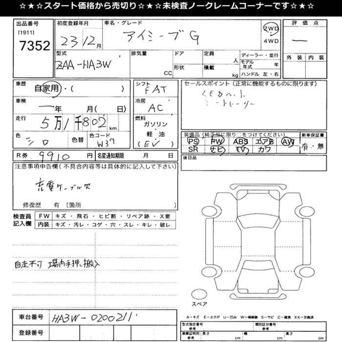 Стартовая цена авто на аукционе 0 ¥