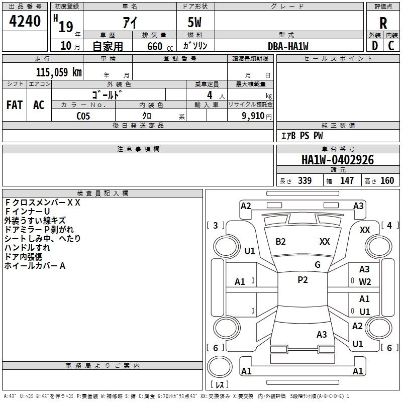 | G | CBA-HA1W | 3B20 | Mid-ship | 4AT | 659cc | 64ps(47kW)/6000rpm | AИ-92 | 1 491 000 | |