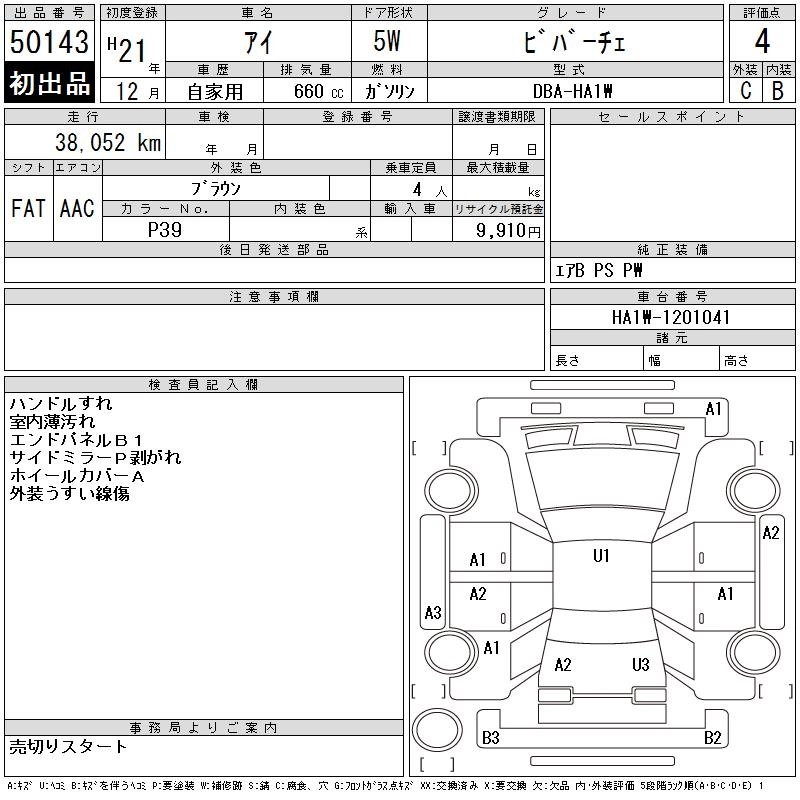 | LIMITED COMFORTPACK | DBA-HA1W | 3B20 | Mid-ship | 4AT | 659cc | 52ps(38kW)/7000rpm | AИ-92 | 1 110 000 |