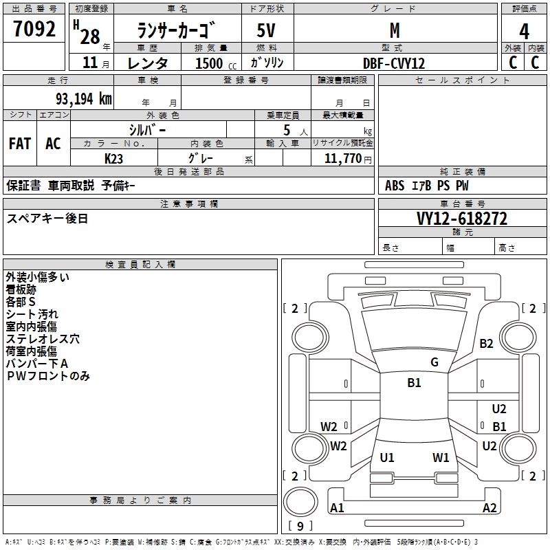 MITSUBISHI LANCER CARGO 2016 г., лот № 7092
