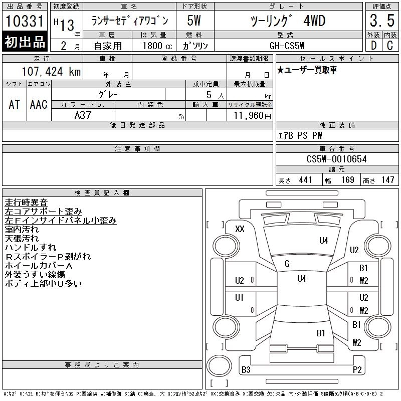 | TOURING SUPER PACKAGE | TA-CS5W | 4G93 GDI | Full-time 4WD | CVT | 1834cc | 130ps(96kW)/6000rpm | AИ-95 | 2 038 000 | |