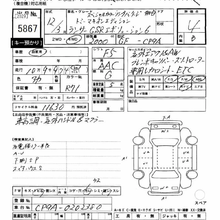 | GSR EVOLUTION VI TOMMI MAKINEN EDITION SPECIAL COLORING PACKAGE | GF-CP9A | 4G63ターボ | Full-time 4WD | 5MT | 1997cc | 280ps(206kW)/6500rpm | AИ-95 | 3 298 000 | |
